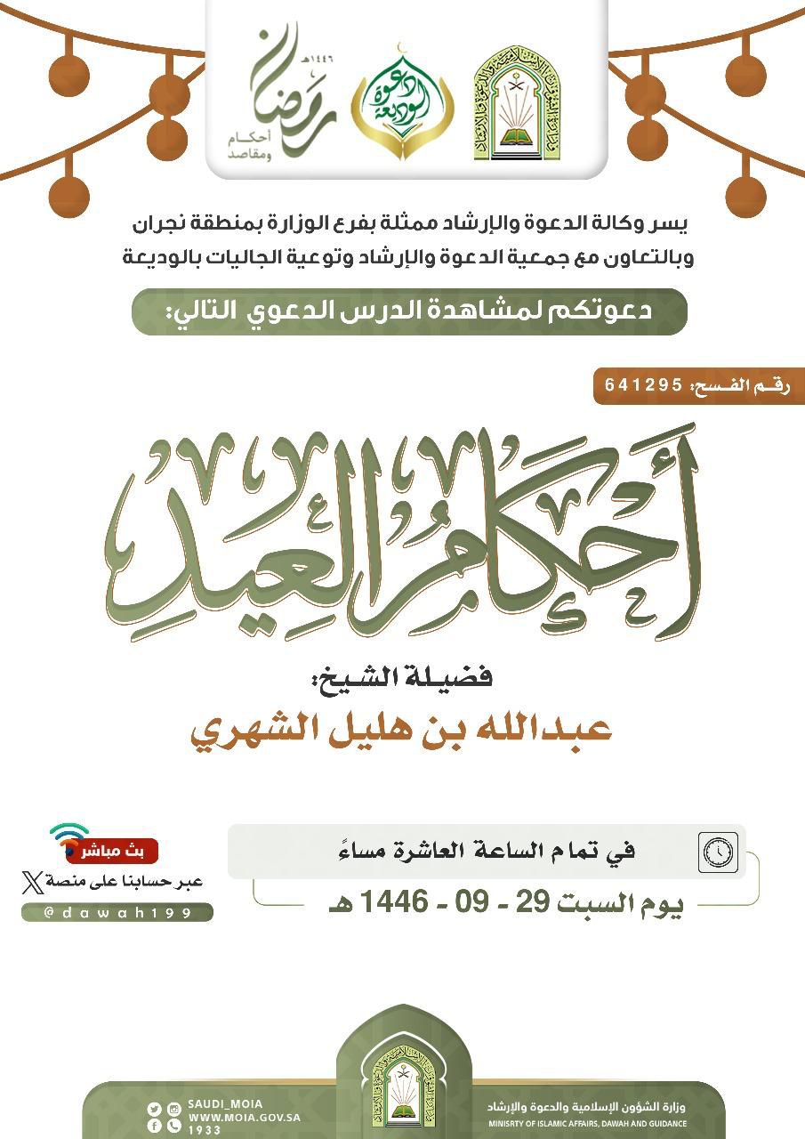يسر دعوتكم لحضور الدروس الدعوية التالية