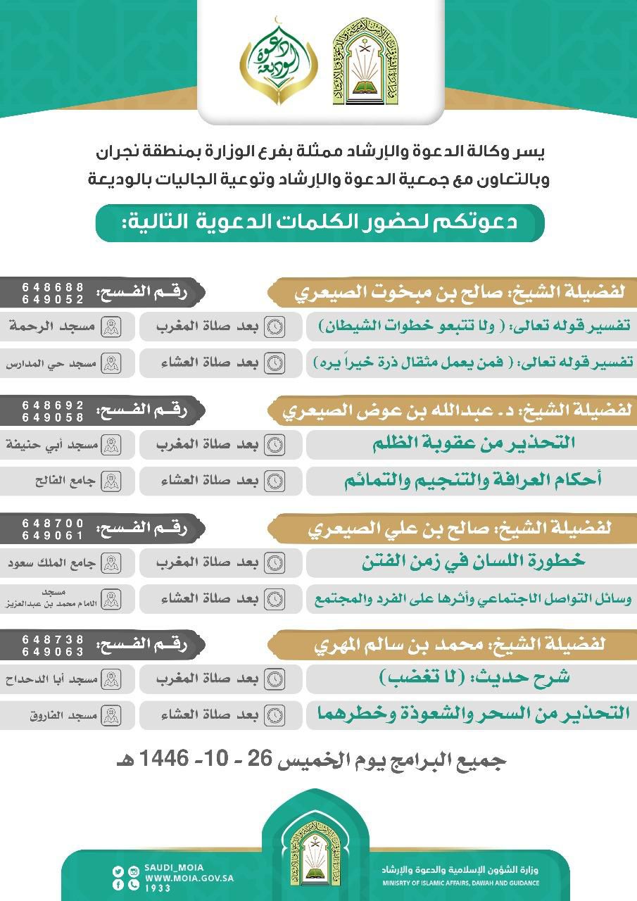 يسر دعوتكم لحضور الكلمات الدعوية التالية