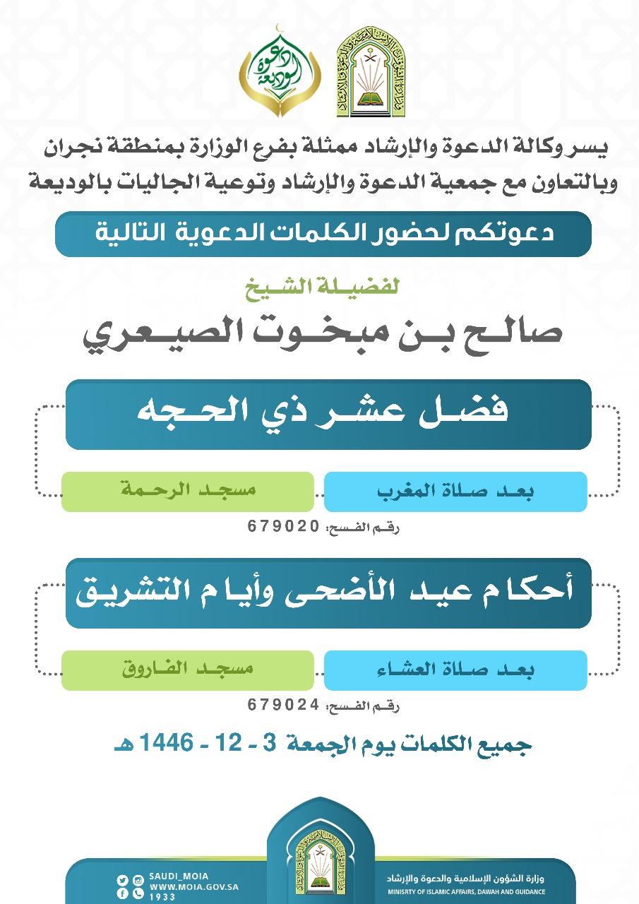 يسر دعوتكم لحضور الكلمة الدعوية التالية