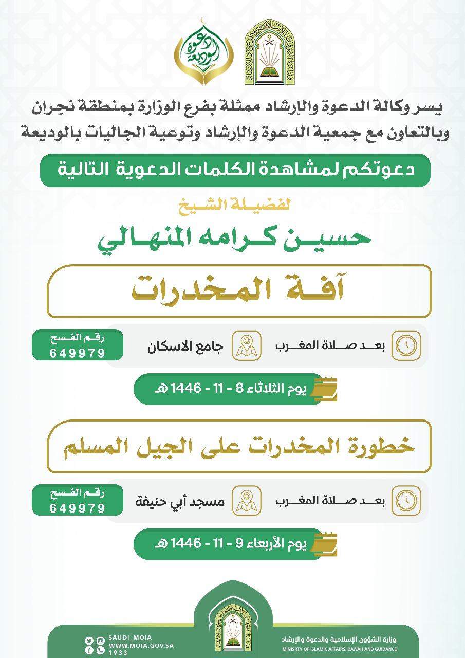 يسر دعوتكم لحضور الكلمة الدعوية التالية