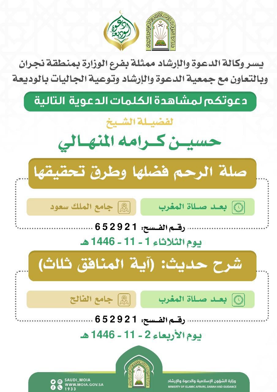 يسر دعوتكم لمشاهدة الكلمات الدعوية التالية